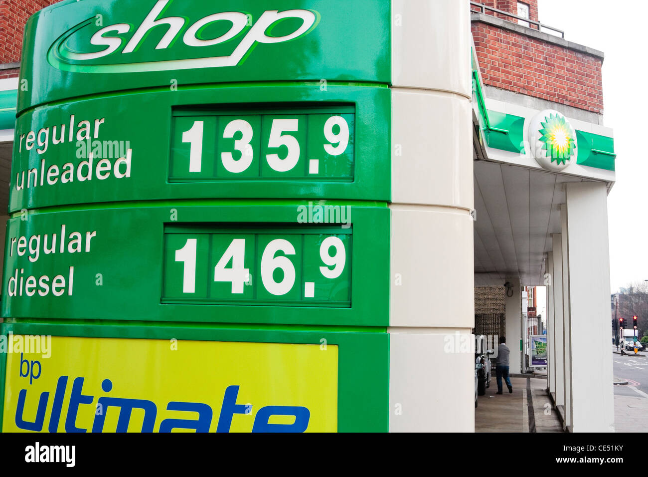 A Close Up Of The Price Board Of A Bp Petrol Station London Uk Stock Photo Alamy