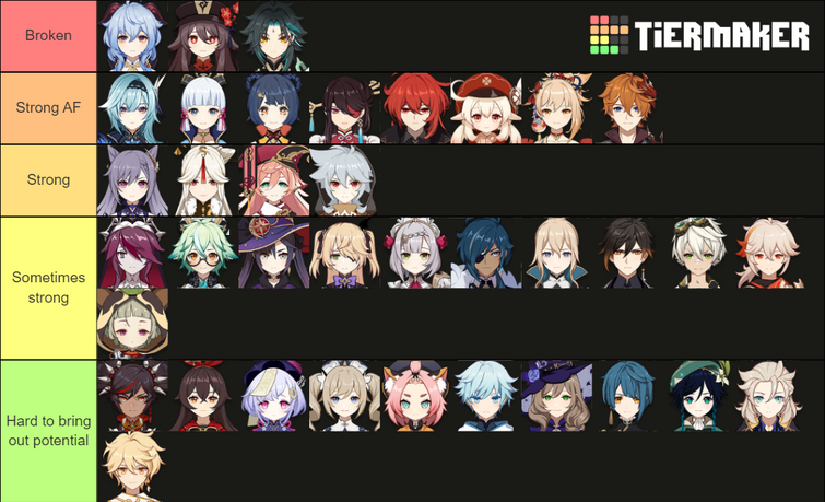 Pick a template below to see the latest Genshin Impact tier list or to create your own. Heavily based on the Tier List by Usagi Sensei a well known and respected theory crafter. With a total of 35 characters to choose from some characters have moved tiers in terms of.